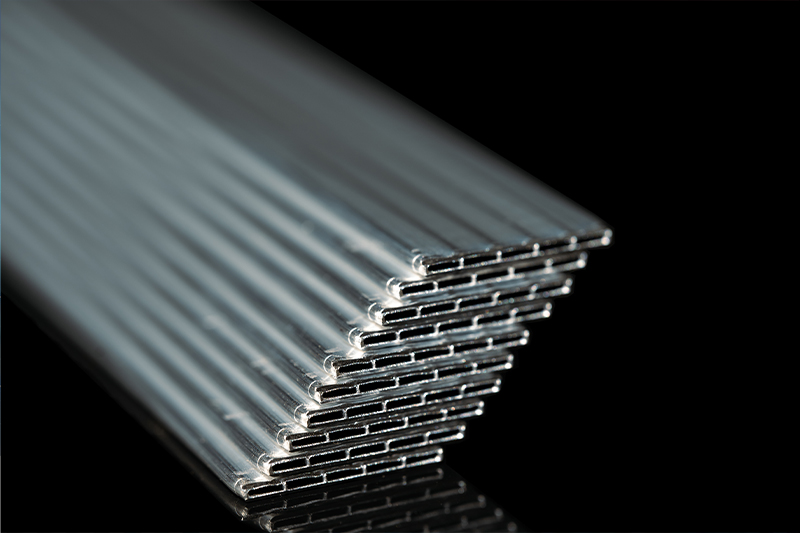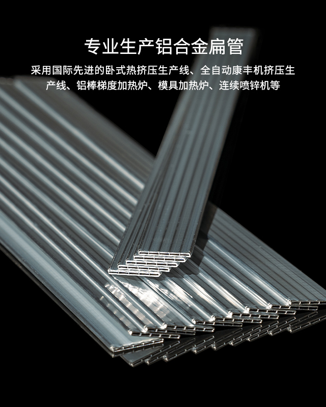 公司是一家集研發、制造、銷售、服務于一體的鋁合金扁管加工企業,采用國際先進的臥式熱擠壓生產線、全自動康豐機擠壓生產線、鋁棒梯度加熱爐、模具加熱爐、連續噴鋅機、精密矯正收口切斷機,以及渦流探傷儀、壓力爆破試驗機、拉力試驗機、扁管斷面尺寸測量儀等高精端設備,專業生產汽車空調、散熱行業用微通道鋁扁管等上百種規格的鋁合金扁管,年生產能力8千噸。